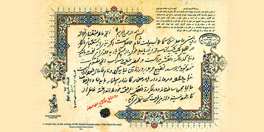 دستخط مبارک مرحوم مير حامد حسين (صاحب کتاب شريف عبقات)