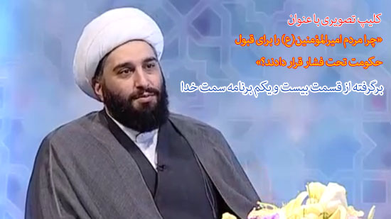 کلیپ تصویری با عنوان «چرا مردم امیرالمؤمنین علیه السلام را برای قبول حکومت تحت فشار قرار دادند؟»؛ برگرفته شده از قسمت بیست و یکم برنامه تلویزیونی «سمت خدا» ـ 10 دی ماه سال 1398