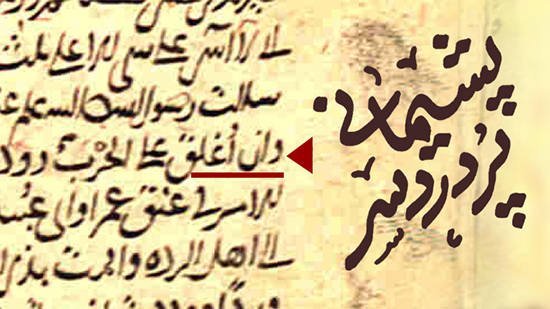 ۵. در تنها نسخه از کتاب “ضیاء مقدسی” نیز که پسر برادرش کتابت نموده است ، این کلمه به گونهای است که گویی نقطه “غ” کمی کشیده شده است.(تصویر ۹)
