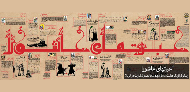 عاشورا، یک صحنه عبرت است. انسان باید به این صحنه نگاه کند، تا عبرت بگیرد. یعنی خود را با آن وضعیت مقایسه کند و بفهمد در چه حال و وضعیتی است؛ چه چیزی او را تهدید میکند؛ چه چیزی برای او لازم است. انسان میتواند خودش را در مقام قهرمانان یا شکستخوردگان این ماجرا تصور نموده و خویش را ارزیابی کند. این را میگویند «عبرت». در این اینفوگرافیک به هفت مورد از زمینههای صعود یا سقوط و عوامل پیوستن یا جاماندن از کاروان سید الشهدا با مراجعه به منابع اصلی تاریخ، حدیث و رجال اشاره شده است.