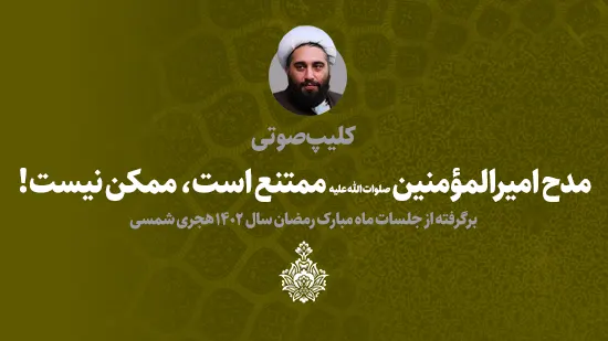 مدح امیرالمؤمنین صلوات الله علیه ممتنع است، ممکن نیست! انتشار: ۳ تیر, ۱۴۰۲ بدون دیدگاه بازدید: 4 دانلود فایل صوتی برگرفته از جلسه چهل و هفتم «سیر تکوّن عقاید شیعه» اشتراک گذاری دسته: کلیپ صوتی قبلیقبلیآیا لیلة المبیت منحصر به شب هجرت بود؟ بعدینصّ؛ معیار تعیین و معرفی امام عالم وجودبعدی
