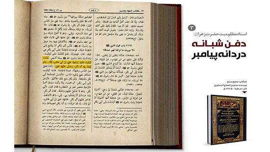 مسلم بن حجـاج درکتـاب معروف خود «صحیح مسلم» پس از نقل ماجرای قهر حضرت زهرا سلام الله علیها که بخاری نیز نقل کرده است، می نویسد:
