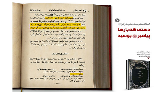 عایشه می گوید: هرگاه که فاطمه وارد میشد، (ماضی استمراری است)پیامبر برمیخاست و با شوق به سویش میرفت، خوش آمد میگفت، دستش را میگرفت، خم میشد و دستش را می بوسید و او را جای خود می نشاند.