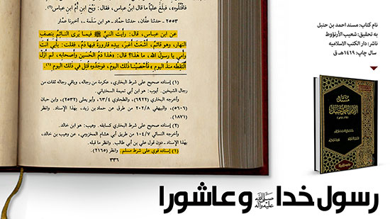 «ابن عباس» می گوید: روزی بعدازظهر رسول خدا صلی الله علیه و آله و سلم را خواب دیدم، که ایشان غبار آلود و پریشان و گریان ایستاده بوند و در دست مبارکشان شیشه ای پر از خون بود. عرض کردم یا رسول الله این چیست؟ فرمود: «این خون حسین و اصحاب اوست».
