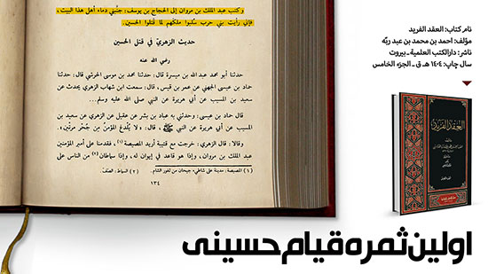 اولین ثمره قیام حسینی انتشار: ۱۰ آبان, ۱۳۹۵ بدون دیدگاه بازدید: 4 اشتراک گذاری «عبدالملک بن مروان» در نامه ای به «حجاج بن یوسف ثقفی» می نویسد:کشتار سادات اهل بیت علیهم السلام را به ما منسوب نکن ؛ چرا که من دیدم وقتی فرزندان ابوسفیان ، حسین علیه السلام را کشتند حکومتشان منقرض شد.برگرفته از کتاب العقد الفرید ج 5 ص 134دسته: گرافیک, نکاتی از کتاب شریف الغدیر قبلیقبلییک روح در دو جسم بعدیجشن گرفتن در روز عاشورابعدی
