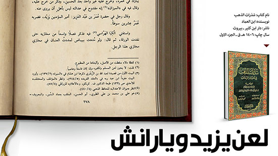 لعن یزید و یارانش انتشار: ۱۲ آبان, ۱۳۹۵ بدون دیدگاه بازدید: 6 اشتراک گذاری «ابن عماد حنبلي» مي گوید:ما درباره «لعن یزید» توقف نمی کنیم؛ بلکه در کفر و عدم ایمان او نیز شکی نداریم. لعنت خدا بر او و تمام اعوان و انصارش باد.برگرفته از کتاب شذرات الذهب ج 1 ص 278دسته: گرافیک, نکاتی از کتاب شریف الغدیر قبلیقبلیجشن گرفتن در روز عاشورا بعدیپیش بینی شهادت امام حسین علیه السلام از زبان امیرالمؤمنین علیه السلامبعدی