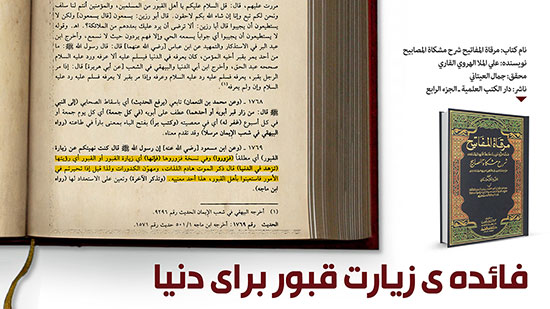 فائده ی زیارت قبور برای دنیا انتشار: ۱۴ آذر, ۱۳۹۵ بدون دیدگاه بازدید: 5 اشتراک گذاری «ملا علی قاری» از عالمان نامی اهل تسنن می نویسد:یکی از فوائد زیارت قبور زهد در دنیاست؛ چرا که یاد مرگ، لذات را نابود می کند و کدورت ها را می زداید؛ از این رو گفته شده هرگاه در کارها حیران شدید، از اهل قبور طلب یاری کنید!برگرفته از کتاب مرقاة المفاتیح ج 4 ص 221دسته: گرافیک, نکاتی از کتاب شریف الغدیر قبلیقبلیگسترش نور حق بعدیافتخار برای تحریف تاریخبعدی