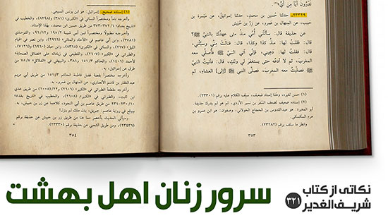 سرور زنان اهل بهشت انتشار: ۲۵ اسفند, ۱۳۹۵ بدون دیدگاه بازدید: 100 اشتراک گذاری «حذیفه» می گوید پیامبر صلی الله علیه و آله و سلم به من فرمود:فرشته ای از فرشتگان بر من نازل شد و به من بشارت داد: همانا حسن و حسین علیهما السلام سید جوانان اهل بهشت و فاطمه سلام الله علیها سید زنان اهل بهشت اند.پ ن: محقق کتاب سند این روایت را صحیح می داند.برگرفته از کتاب «المسند» ج 38 ص 353 و 354دسته: گرافیک, نکاتی از کتاب شریف الغدیر قبلیقبلیراستگوترین صحابه بعدیتقلید کورکورانهبعدی
