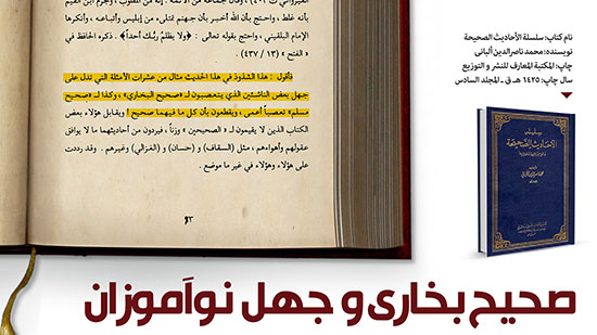صحیح بخاری و جهل نوآموزان انتشار: ۱۶ اردیبهشت, ۱۳۹۶ بدون دیدگاه بازدید: 6 اشتراک گذاری «ناصرالدین البانـی» از محدثان برجستـه وهابیـت، تعصب بر صحیح بخـاری و صحیـح پنداشتن تمام روایات این کتاب را از جهل بعضی نوآموزان می داند که از اهل تحقیق نیستند.برگرفته از کتاب « سلسلة الاحادیث الصحیحه» ج 6 ص 96دسته: دست نوشته ها, فیش های تصویری قبلیقبلیاموات می شنوند! بعدیتحریف در صحیح بخاریبعدی