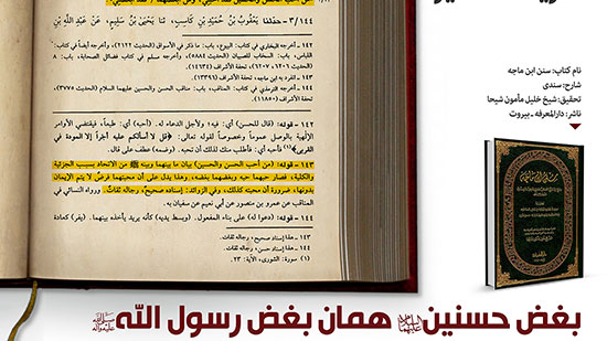 «حافظ سندی» شارح معروف «سنن ابن ماجه» در شرح روایتی از رسول خدا صلی الله علیه و آله و سلم (که فرمود: هرکس حسن و حسین علیهما السلام را دوست داشته باشد، مرا دوست داشته است) می نویسد: