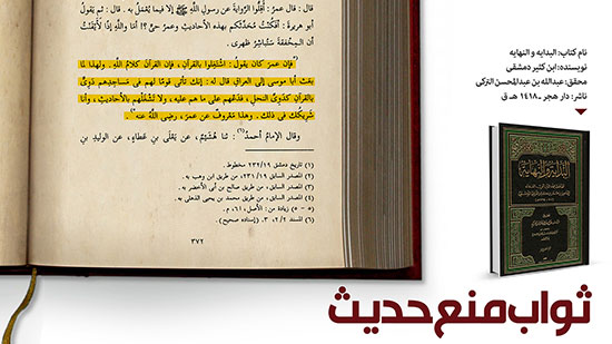«تو به سوی مردمی می روی که فضای مساجد را با زمزمه قرائت قرآن پر کرده اند؛ پس آنها را به همان حال واگذار و به احادیث پیامبر صلی الله علیه و آله و سلم مشغولشان نکن و من در [ثواب] این عمل با تو شریکم».
