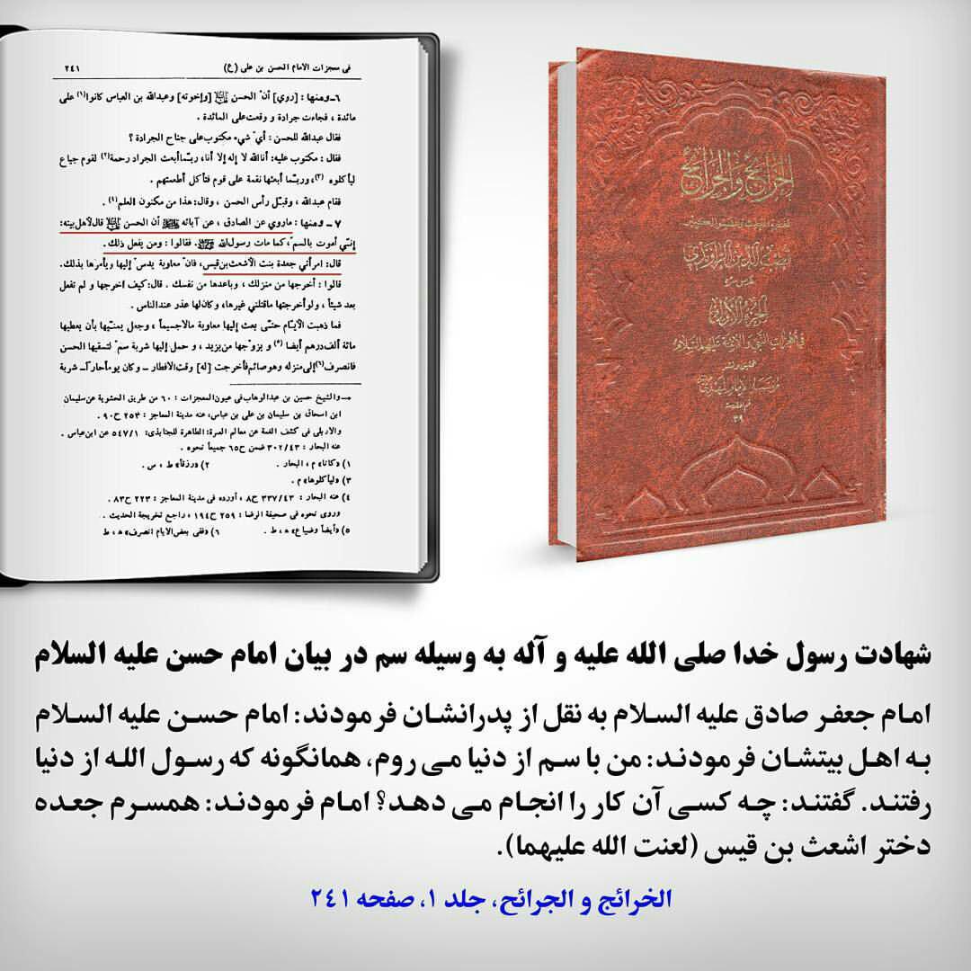 ماجرای شهادت رسول خدا هم در منابع تاریخی بازتاب ندارد اما در منابع روایی ما و اهل سنت بازتاب دارد . در منابع زیادی از جمله مستدرک حاکم نیشابوری مسموم شدن رسول گرامی اسلام مطرح شده است. در بین منابع شیعی هم همین موضوع انعکاس دارد.