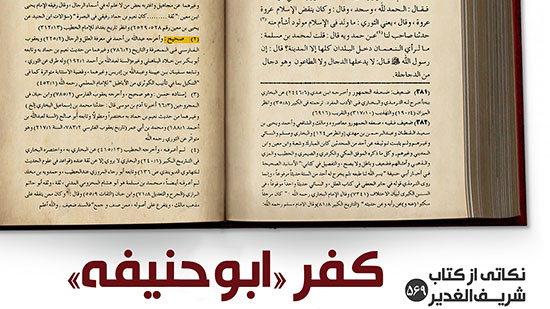 کفر «ابوحنیفه» انتشار: ۱۵ بهمن, ۱۳۹۶ بدون دیدگاه بازدید: 122 اشتراک گذاری «ابوعبدالله محمد بن اسماعیل بخاری» محدث شهیر اهل سنت در کتاب «الضعفاء» درباره «ابوحنیفه» امام حنفیان می نویسد:«ابوحنیفه دو مرتبه کافر شد و او را از کُفـر توبـه دادنـد».پ ن: محقق کتاب سند این خبر را صحیح می داند.برگرفته از کتاب «تحفة الأقویاء» ص 113 و 114دسته: دست نوشته ها, فیش های تصویری, نکاتی از کتاب شریف الغدیر قبلیقبلیادب ذهبی بعدیدشمن اسلامبعدی