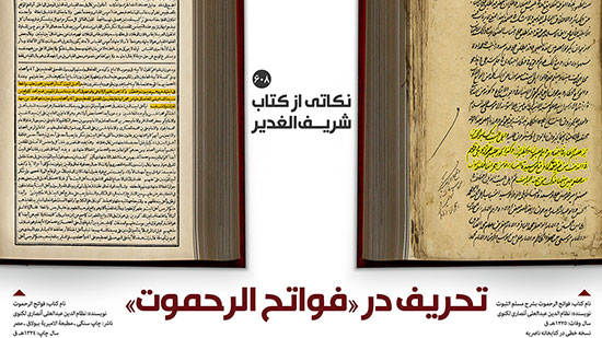 «مولوی عبدالعلی لکنوی» عالم برجسته حنفی در نسخ خطی «فواتح الرحموت»، حضرت زهرا سلام الله علیها را به دلیل خشم و غضب بر خلیفه اول به ارتکاب ذنب و گناه متهم می کند؛ این در حالی است که در چاپ سنگی دوم این اثر در سال 1324هـ ق، با حذف واژه «ذنب» و تغییر آن به «فی امرٍ غیر مناسب لمرتبتهم» و اضافه کردن عبارت «لا ذنب فیه»، کوشیده شده است از بار منفی این جسارت کاسته شود.